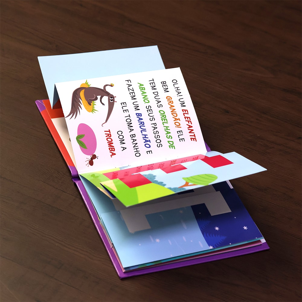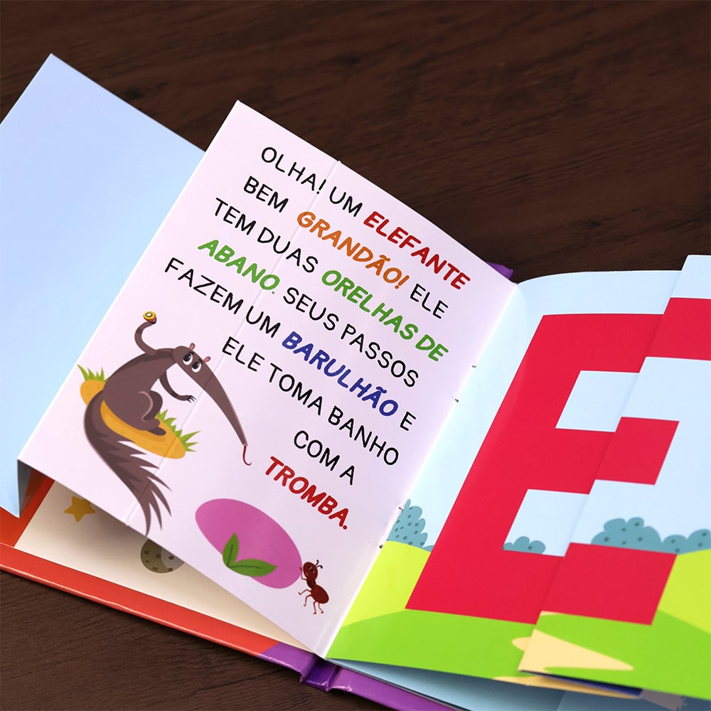 Esse livro é muito especial porque você se diverte com as vogais. Encontre aqui a brincadeira "esconde-esconde", em todas as páginas existem vogais que fazem parte do nome de algum animal e para descobrir é só abrir cada vogal. Qual vogal que começa a palavra elefante? E unicórnio? Vamos descobrir juntos.