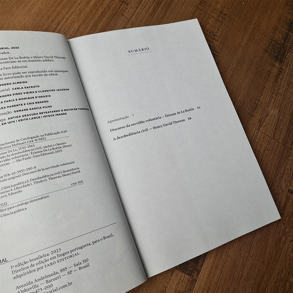 A DEFESA DA LIBERDADE INDIVIDUAL CONTRA A TIRANIA DO ESTADO O volume que o leitor tem em mãos traz os dois maiores clássicos da defesa da liberdade do indivíduo contra a tirania do Estado. Numa época em que o poder do Estado adquiriu uma magnitude nunca vista, as lições teóricas e práticas ensinadas por O discurso da servidão voluntária, de Étienne de La Boétie, e A desobediência civil, de Henry David Thoreau, são mais relevantes do que nunca. Tanto La Boétie quanto Thoreau partem da premissa básica de que o Estado só possui poder por consequência do consentimento, tácito ou explícito, daqueles sobre os quais o exerce. Assim, para acabar como seu poder, basta retirar-lhe esse consentimento. Se La Boétie fornece a fórmula conceitual para a desobediência civil, Thoreau, que foi preso por recusar-se a pagar impostos, fornece o exemplo concreto. Segundo ele, sob um governo que prende qualquer homem injustamente, o verdadeiro lugar para um homem justo é também a prisão. Eis a fórmula da desobediência civil: negar-se a reconhecer o governo tirano e arcar heroicamente com as consequências. Por esse meio, a minoria indefesa se torna irresistível quando intervém com todo o seu peso. Esses dois ensaios são, portanto, complemento natural um do outro e leitura obrigatória para quem quer que lute pelas liberdades individuais em um mundo no qual a tirania do Estado avança a passos cada vez mais largos.