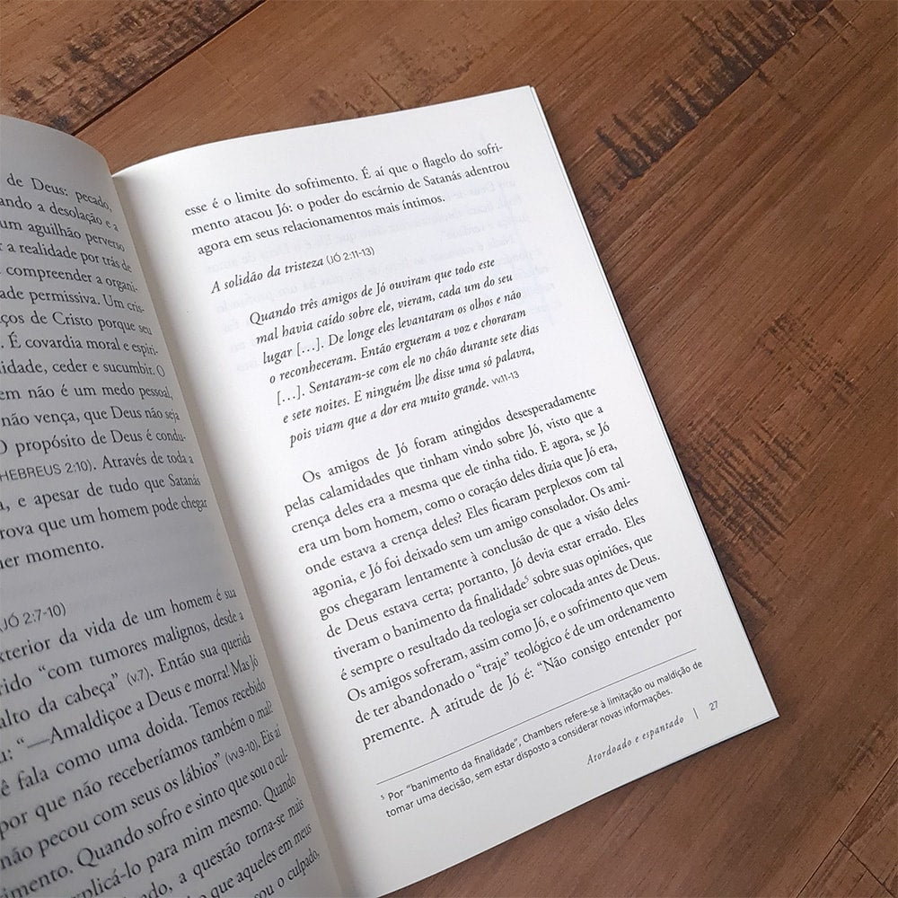 Convida o leitor a uma incrível jornada pelo livro de Jó.Nesta obra, Oswald Chambers, mostra o quanto se pode confiar em Deus, a despeito das adversidades. Sem clichês consoladores, o autor discorre sobre o sofrimento e a obra divina em meio à dor. Este texto tem como base os sermões e estudos ministrados a soldados que enfrentavam os horrores da guerra. Tem sido fonte de encorajamento a muitos desde sua publicação, em 1917.