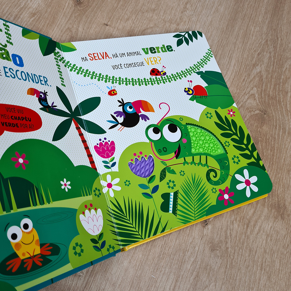 O camaleão adora se esconder! Será que você consegue encontrá-lo por aí? Descubra neste divertido livro com rimas, enquanto toca e sente o colorido camaleão.