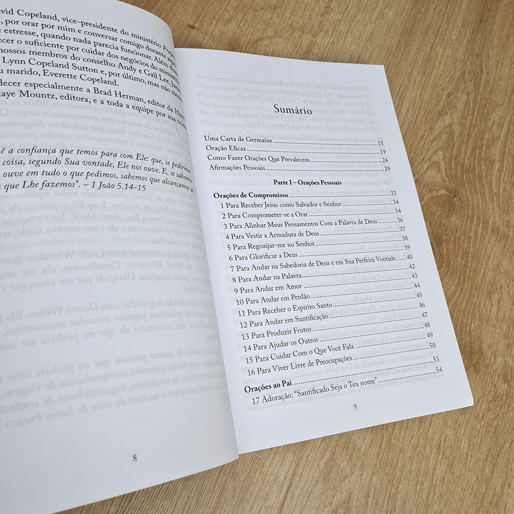 "Orações Que Prevalecem". Este livro, escrito por Germaine Copeland, é uma fonte imensurável de inspiração e orientação para crentes em todo o globo terrestre. Repleto de orações baseadas nas Escrituras, ele oferece soluções divinas para os desafios diários da vida. Seja buscando proteção, sabedoria, cura ou orientação, esta edição atualizada é uma ferramenta essencial para alcançar o avanço diário através do poder da oração. Com uma linguagem contemporânea e referências bíblicas atualizadas, é o companheiro perfeito para quem deseja fortalecer sua conexão com o Divino e experimentar a transformação em sua vida de oração.