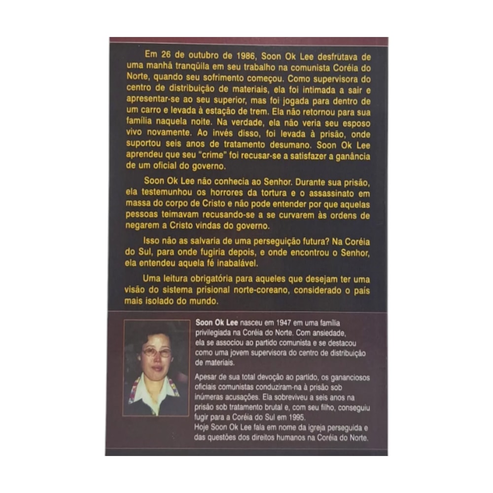 Em 26 de outubro de 1986, Soon Ok Lee, supervisora na Coréia do Norte, teve sua vida transformada quando foi levada à prisão sob acusação de recusar atender aos desejos de um oficial. Lá, enfrentou seis anos de abusos e sofrimento. Este relato emocionante oferece uma visão única sobre o sistema prisional norte-coreano, sendo essencial para estudiosos de teologia, professores, missionários e todos interessados nas dinâmicas das prisões em um dos países mais isolados do mundo.