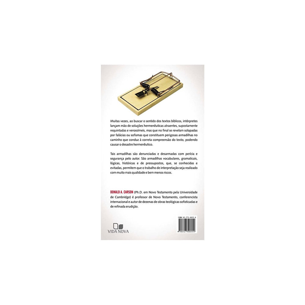 Os Perigos da interpretação bíblica infelizmente, são muito presentes nos dias atuais. Muitas vezes, ao buscar o sentindo nos textos bíblicos, intérpretes apresentam soluções atraentes, supostamente requintadas e verdadeiras, mas que no final se revelam solapadas por falácias ou sofismas que constituem perigosas armadilhas no caminho que conduz à correta compreensão do texto, podendo causar desastres. Tais armadilhas são denunciadas e desarmadas com perícia e segurança pelo autor. São armadilhas vocabulares, gramaticais, lógicas, históricas e de pressuposto, que, se conhecidas e evitadas, permitem que o trabalho de interpretação seja realizado com muito mais qualidade e bem menos riscos.Título: | Os Perigos da interpretação bíblica |