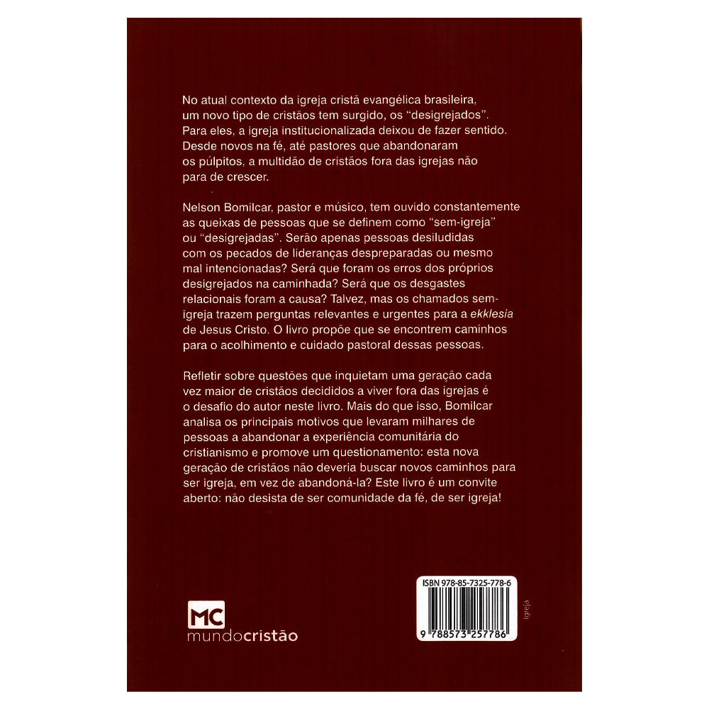 Bomilcar investiga as causas desse fenômeno e lança um desafio: não desista da comunidade da fé. Mais do que uma análise, este livro é um convite para repensar juntos o futuro da igreja — porque, no fim, o que está em jogo não é uma instituição, mas a essência do corpo de Cristo.