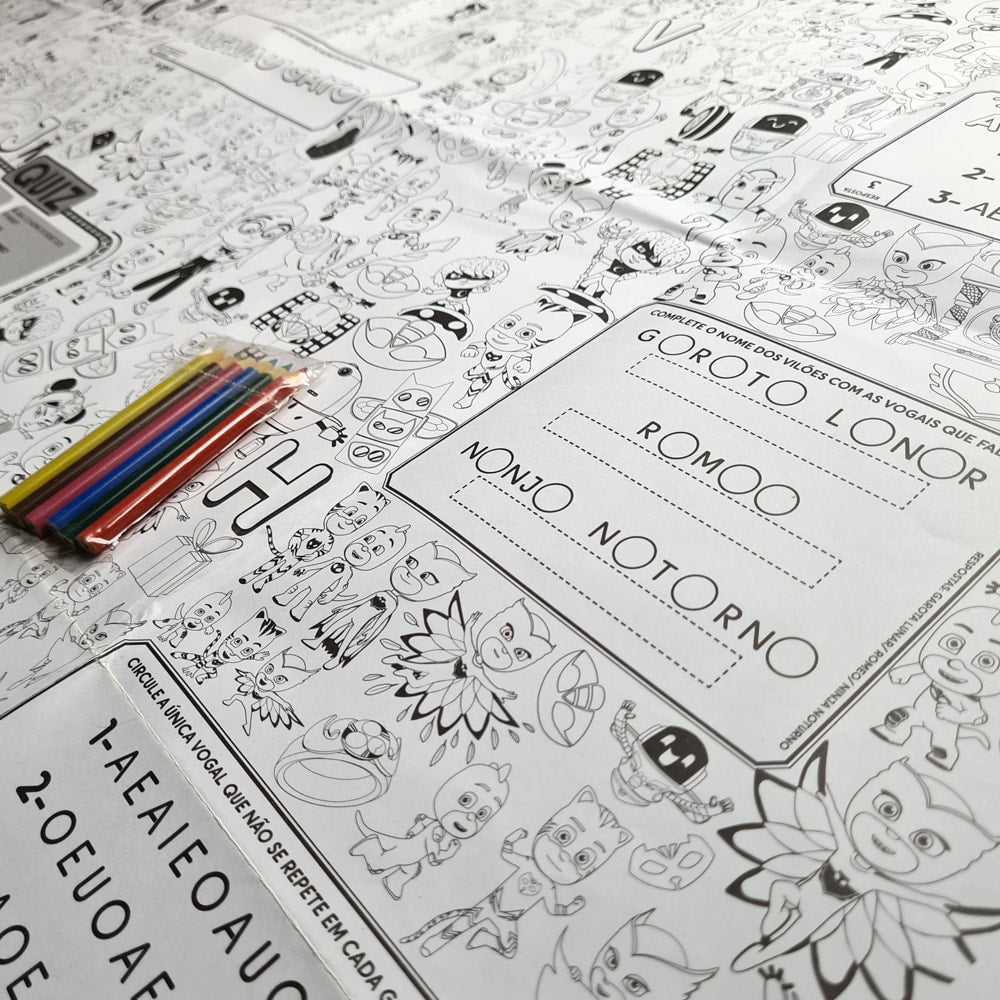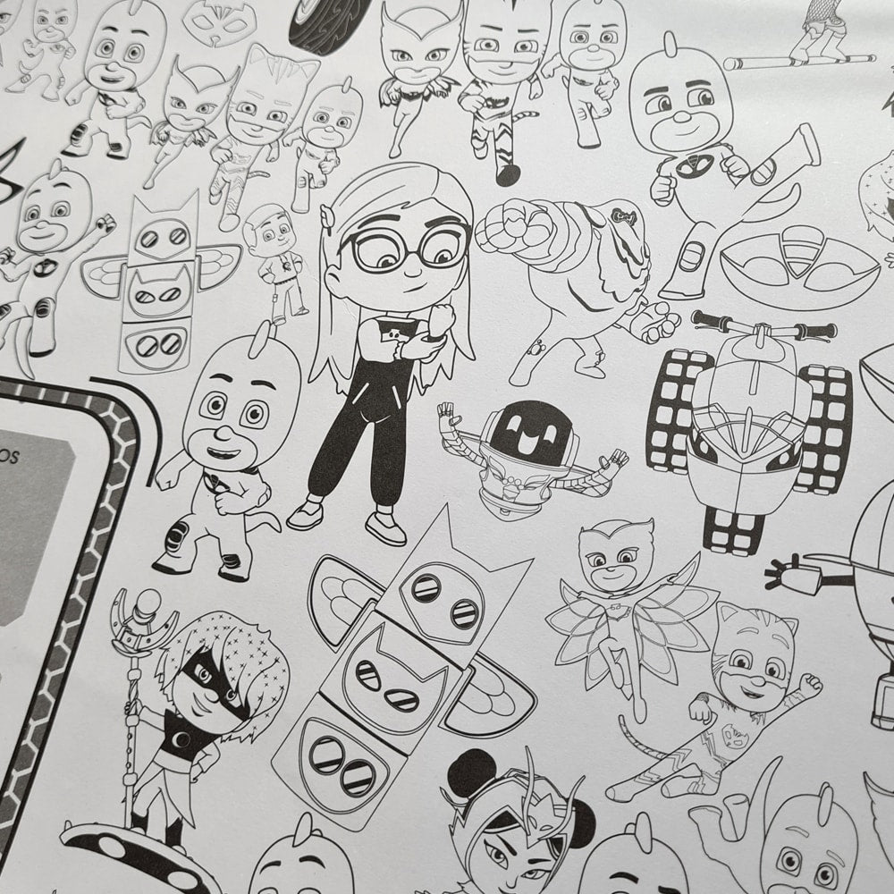Um pôster gigante de 1.20m x 90cm com os heróis preferidos de PJ Masks para você se distrair de montão com atividades e várias ilustrações, são mais de 500 figuras para pintar! Ainda vem com lápis de cor para completar a diversão!