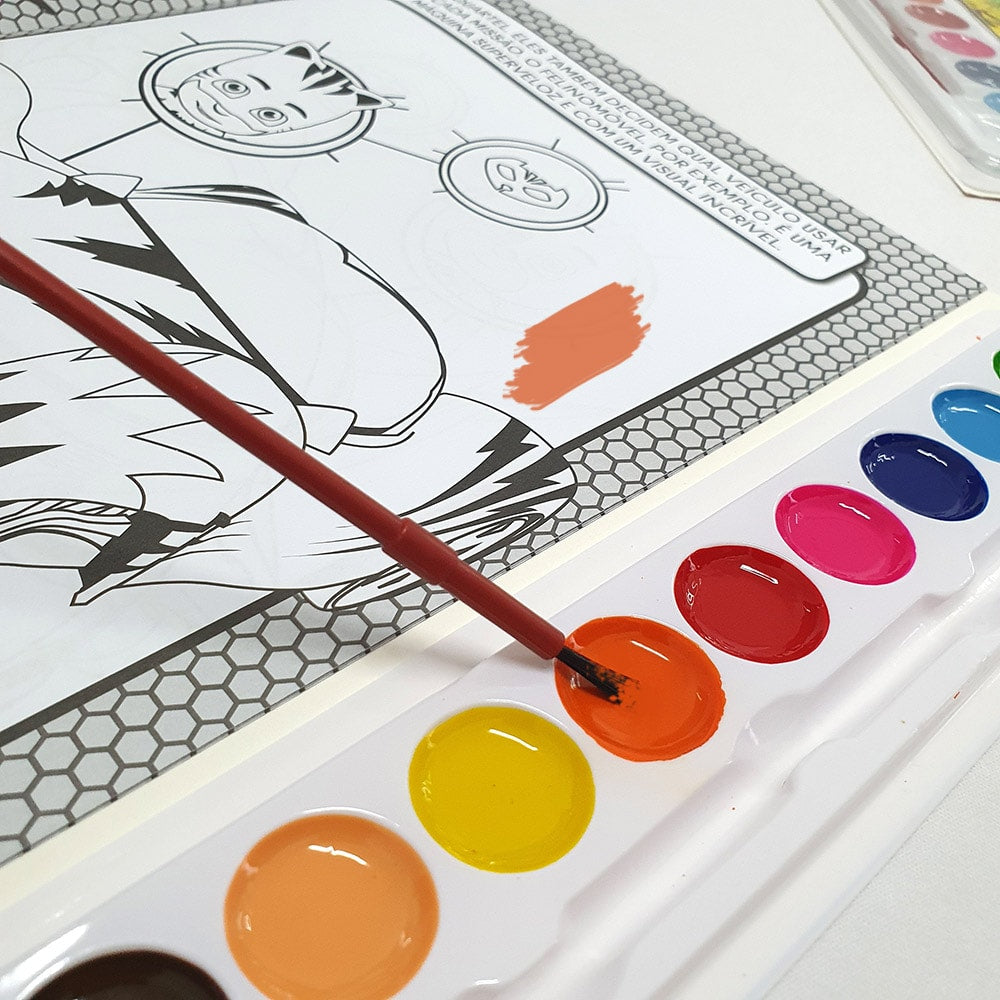 Os heróis, Menino Gato, Lagartixo e Corujita estão na área! Quer descobrir um pouco mais sobre eles, seus veículos e os vilões que o trio enfrenta sempre que anoitece na cidade? Leia este livro e aproveite para dar vida a toda turma, pintando os desenhos com as aquarelas!