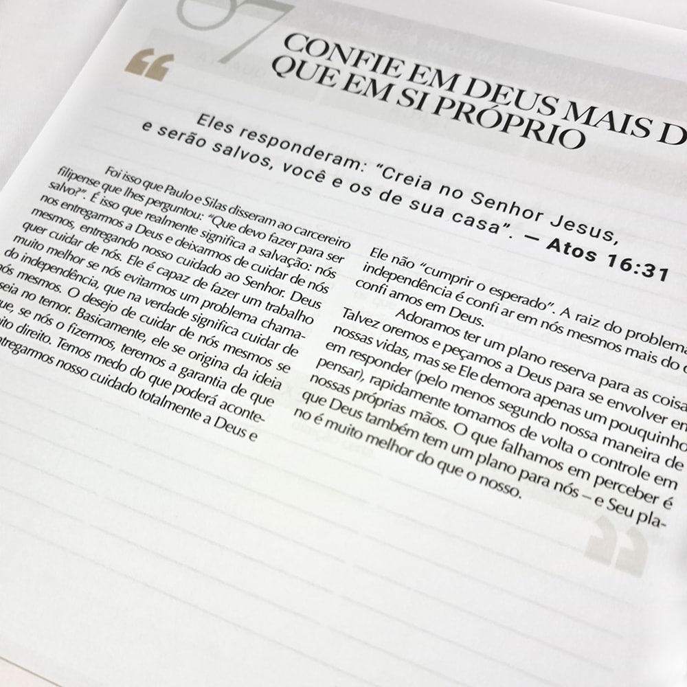 O novo lançamento da editora Bello, traz consigo uma proposta inovadora de incentiva-la há um novo plano de vida diária, estabelecendo novos hábitos e cultivando uma vida com Deus, você terá em mãos todos os dias frases motivacionais, devocionais semanas da Joyce Meyer, juntamente também com um plano de leitura anual da Bíblia Sagrada.