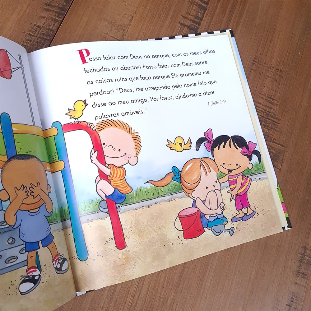 Neste livro divertido e colorido, Debby Anderson explica esta emocionante verdade. Ela incluiu referências bíblicas para auxiliar os pais e pequenos leitores a conhecerem melhor a Bíblia. As crianças aprenderão que podem conversar com Deus e que Ele sempre ouvirá suas orações.