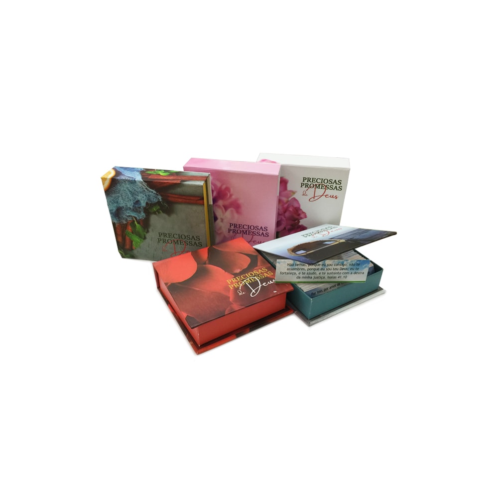 Caixinha de Promessas Preciosas Promessas de Deus é um livro box em com versículos bíblicos selecionados que você pode ler um pequeno pedaço selecionado da Palavra de Deus a cada dia. Ideal para presentear amigos e amigas que querem ter sempre à mão uma pequena e importante forma de partilhar o poder de Deus em sua vida.