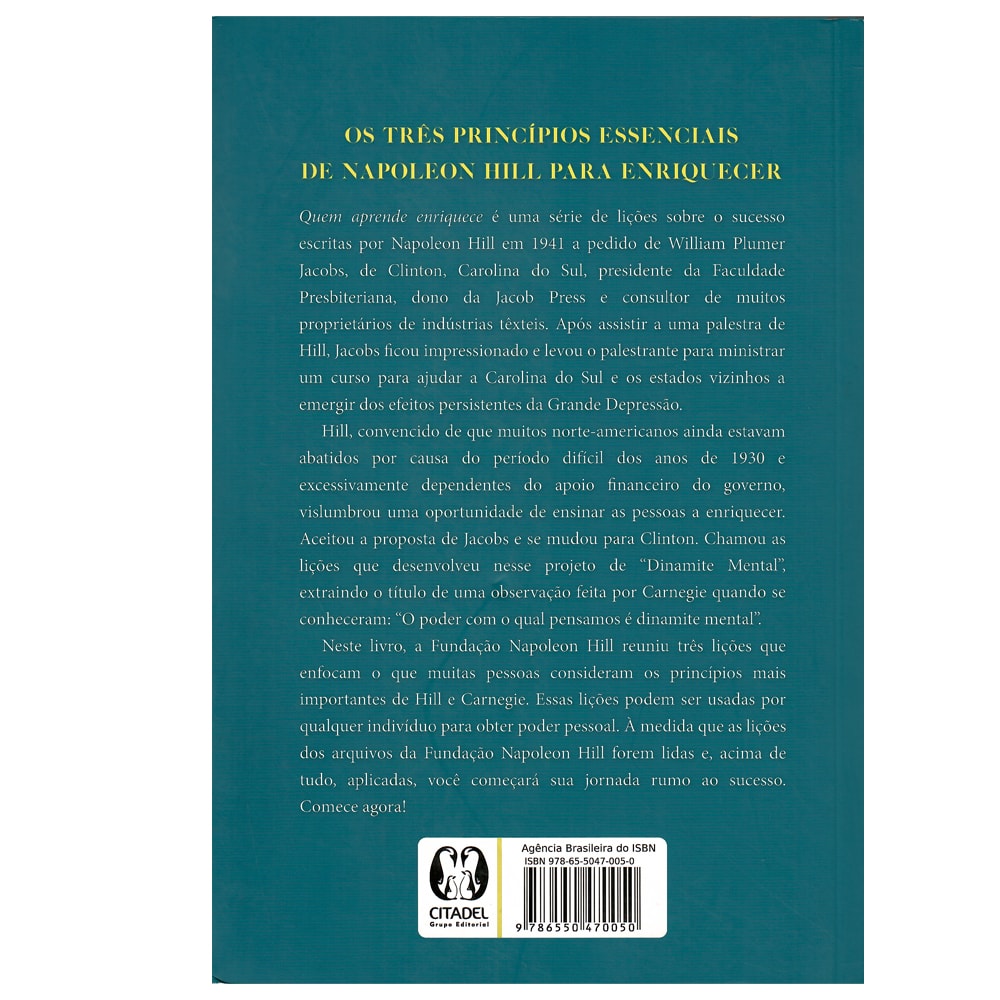 "Quem Aprende Enriquece" reúne lições valiosas sobre o sucesso, escritas por Napoleon Hill, baseadas nos princípios fundamentais de Hill e Carnegie. Essas lições oferecem ferramentas poderosas para o desenvolvimento do poder pessoal e podem ser aplicadas por qualquer pessoa em sua jornada rumo ao sucesso. Ao seguir e aplicar esses ensinamentos, você dará os primeiros passos para conquistar seus objetivos. Comece hoje mesmo!