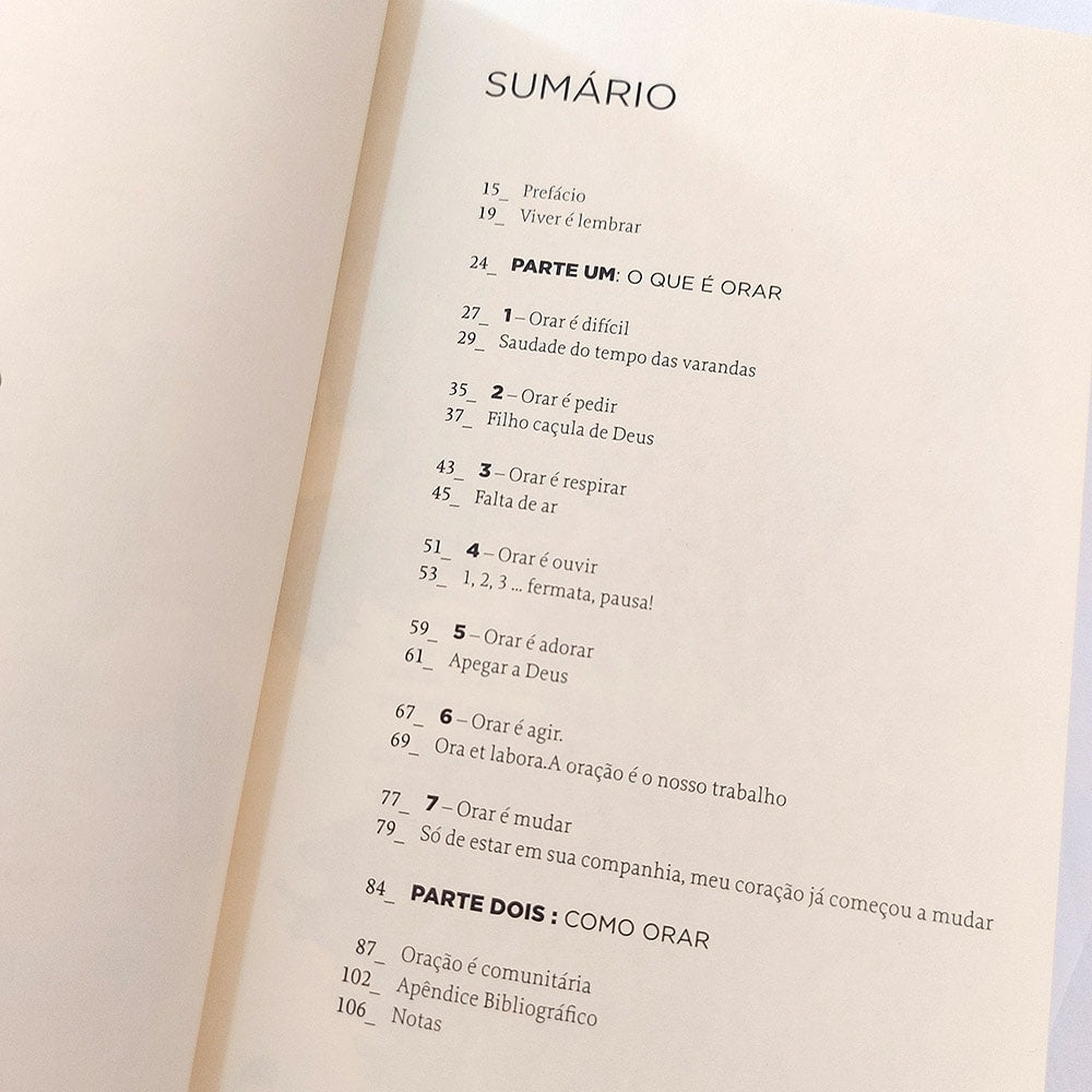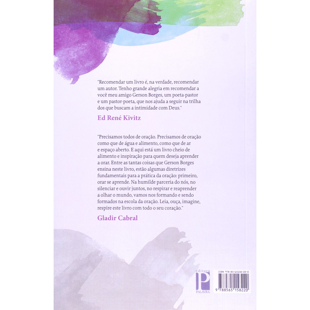 Precisamos todos de oração. Precisamos de oração como que de água e alimento, como que de ar e espaço aberto. E aqui está um livro cheio de alimento e inspiração para quem deseja aprender a orar. Entre as tantas coisas que Gerson Borges ensina neste livro, estão algumas diretrizes fundamentais para a prática da oração: primeiro, orar se aprende. Na humilde parceria do nós, no silenciar e ouvir juntos, no respirar e reaprender a olhar o mundo, vamos nos formando e sendo formados na escola da oração. Leia, ouça, imagine, respire este livro com todo o seu coração.