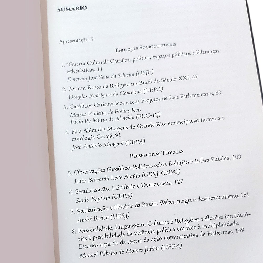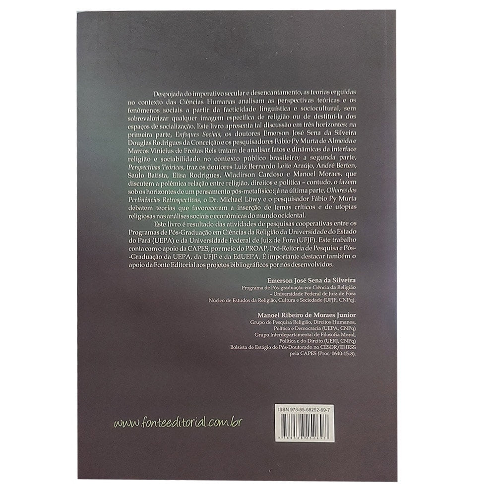 Despojada do imperativo secular e desencantamento, as teorias erguidas no contexto das Ciências Humanas analisam as perspectivas teóricas e os fenômenos sociais a partir da facticidade linguística e sociocultural, sem sobrevalorizar qualquer imagem específica de religião ou de destituí-la dos espaços de socialização. Este livro apresenta tal discussão em três horizontes: na primeira parte, Enfoques Sociais, o Dr. Emerson José Sena da Silveira, o Dr. Douglas Rodrigues da Conceição e os pesquisadores Fábio Py Murta de Almeida e Marcos Vinicius de Freitas Reis tratam de analisar fatos e dinâmicas da interface religião e sociabilidade no contexto público brasileiro; a segunda parte, Perspectivas Teóricas, traz os doutores Luiz Bernardo Leite Araújo, Andre Berten, Saulo Batista, Elisa Rodrigues, Wladirson Cardoso e Manoel Moraes, que discutem a polêmica relação entre religião, direitos e política contudo, o fazem sob os horizontes de um pensamento pós-metafísico; já na última parte, Olhares das Pertinências Retrospectivas, o Dr. Michael Löwy e o pesquisador Fábio Py Murta debatem teorias que favoreceram a inserção de temas críticos e de utopias religiosas nas análises sociais e econômicas do mundo ocidental.