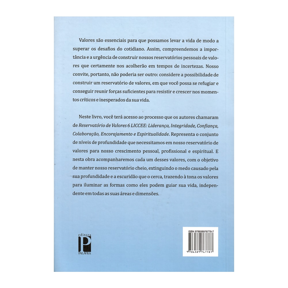 Em um mundo repleto de incertezas e desafios constantes, Reservatório de Valores convida o leitor a refletir sobre a importância de cultivar princípios sólidos e duradouros. A obra propõe a construção de um verdadeiro "reservatório" interno, onde valores como empatia, resiliência, honestidade e coragem se acumulam como recursos essenciais para enfrentar momentos críticos da vida. Mais do que um livro, este é um chamado à introspecção e à ação, incentivando cada pessoa a investir no que realmente importa para viver com propósito, equilíbrio e força interior.