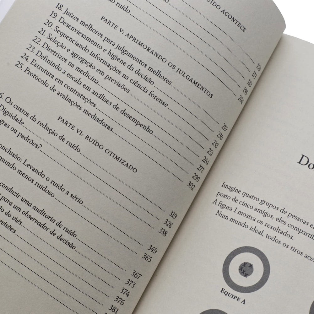 Escrito pelos especialistas Daniel Kahneman, Olivier Sibony e Cass R. Sunstein, Ruído revela como a variabilidade nos julgamentos humanos – o "ruído" – afeta decisões em áreas como medicina, direito, economia e gestão. Com base em extensa pesquisa, os autores mostram como esse fenômeno prejudica nossas escolhas e como, com simples ajustes, podemos tomar decisões mais precisas e justas. O livro oferece soluções práticas para reduzir o ruído e os vieses, transformando a forma como avaliamos pessoas e situações.