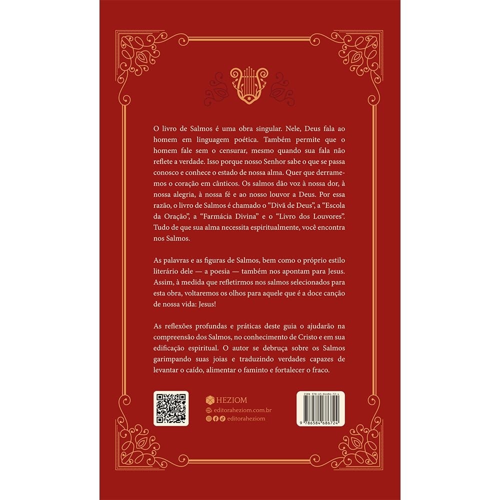 Ele quer que derramemos o coração em cânticos. Os salmos dão voz à nossa dor, à nossa alegria, à nossa fé e ao nosso louvor a Deus. Por essa razão, o livro de Salmos é chamado o "Divã de Deus", a "Escola da Oração", a "Farmácia Divina" e o "Livro dos Louvores". Tudo de que sua alma necessita espiritualmente, você encontra nos Salmos. As palavras e as figuras de Salmos, bem como o próprio estilo literário dele - a poesia - também nos apontam para Jesus. Assim, à medida que refletirmos nos salmos selecionados para esta obra, voltaremos os olhos para aquele que é a doce canção de nossa vida: Jesus!