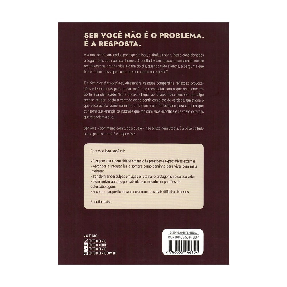 Em Ser você é inegociável, Alessandra Vasques convida você a resgatar sua essência e viver com mais verdade. Com reflexões e ferramentas práticas, o livro mostra que não é preciso chegar ao limite para mudar — basta querer se reconectar com quem você realmente é. Ao longo da leitura, você aprenderá a questionar padrões, reconhecer suas sombras, assumir o protagonismo da própria vida e encontrar sentido mesmo nos momentos difíceis. Ser inteiro não é luxo. É necessidade. E é inegociável.