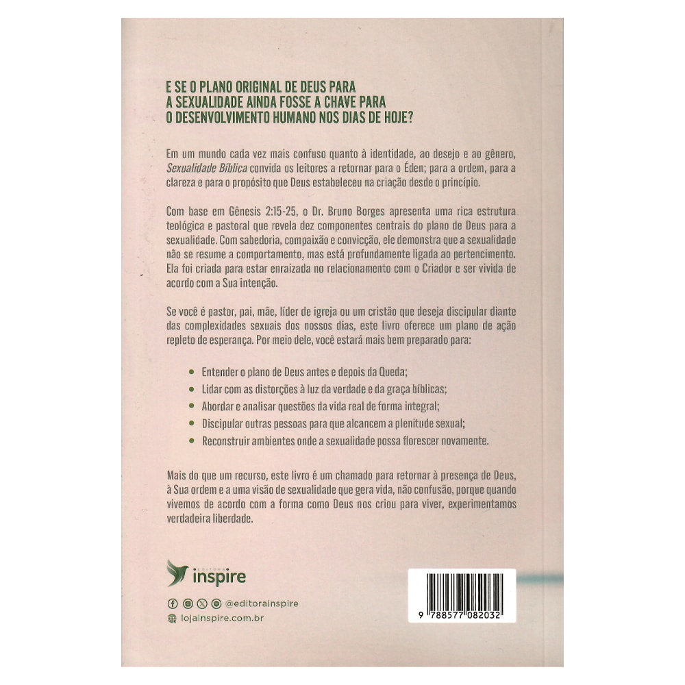 Em meio às incertezas sobre identidade, gênero e desejo, Sexualidade Bíblica aponta para o plano original de Deus revelado no Éden. Com profundidade bíblica e aplicação prática, o Dr. Bruno Borges mostra que a verdadeira sexualidade nasce da nossa identidade em Cristo e floresce em Sua presença. Mais que respostas a dilemas atuais, este livro apresenta um caminho de discipulado, cura e restauração, unindo graça e verdade para transformar vidas, famílias e comunidades.