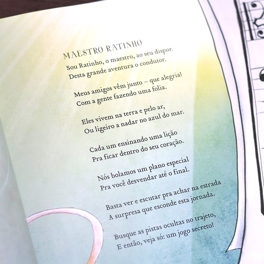 Ao longo desta jornada, você vai encontrar as surpresas que o Maestro Ratinho deixou pelo caminho – uma abelhinha que vive se escondendo, letras embaralhadas que formam palavras e até uma mensagem em código para você mesmo decifrar!