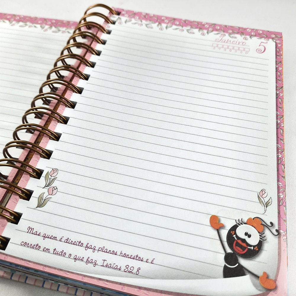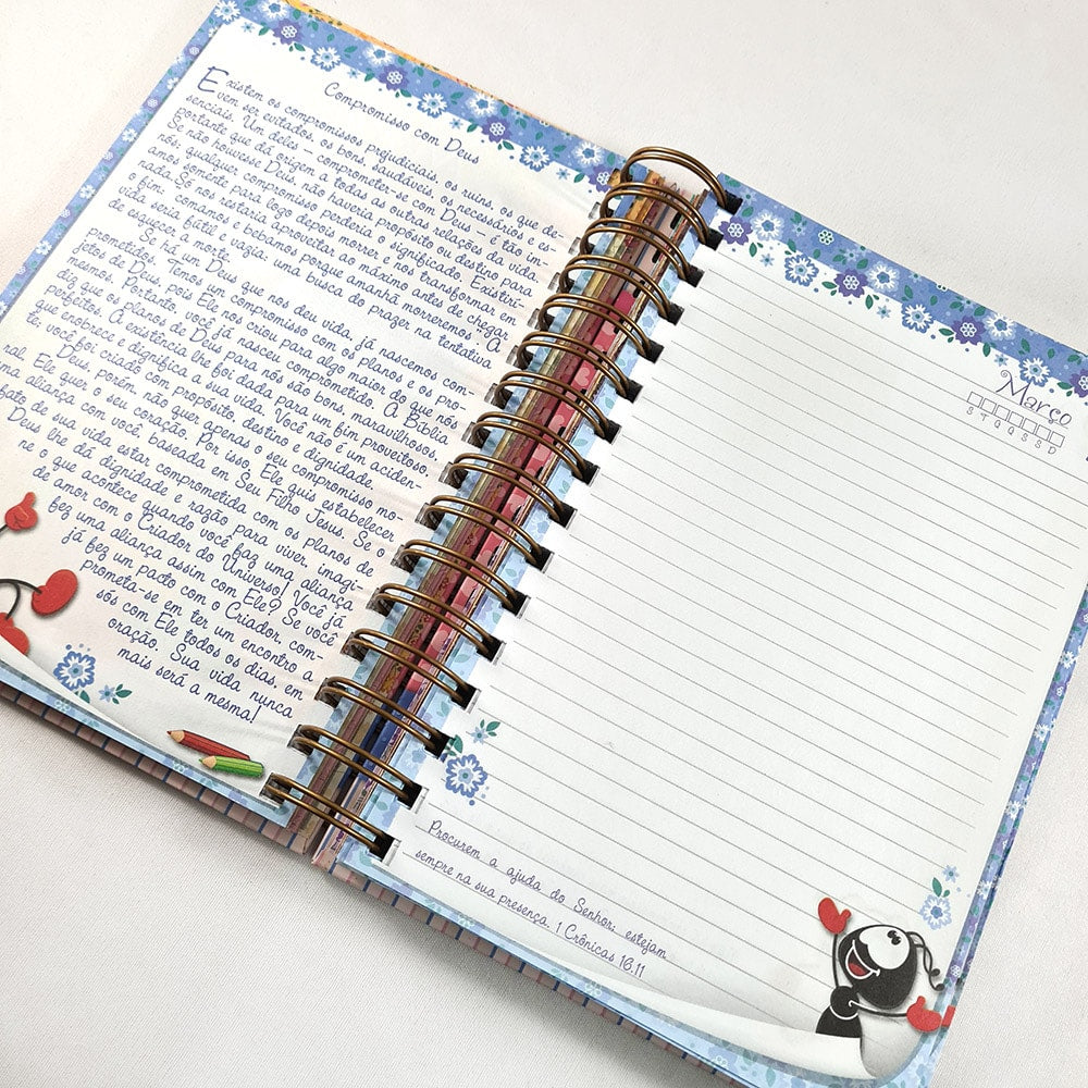 - Uma página por dia, acompanhada por um versículo bíblico;