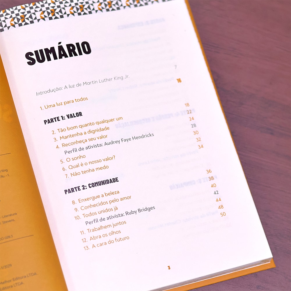 A partir da história e do exemplo de Luther King e de outros ativistas do movimento pelos direitos civis, este livro ensina que é preciso respeitar igualmente a todos os seres humanos, sem discriminação, pois assim quis o Senhor, e que espalhar a bondade e seguir a Cristo é um elemento essencial da luta pela justiça. Além disso, mostra como pequenas atitudes podem contribuir para a construção de um futuro melhor para todos.