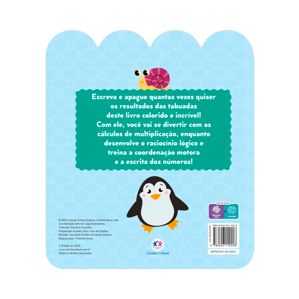 Este livro oferece uma maneira prática e prazerosa de dominar a tabuada. As páginas permitem escrever e apagar os resultados, oferecendo um espaço para praticar e fixar os conhecimentos. Ao mesmo tempo, a obra incentiva a coordenação motora e o desenvolvimento da escrita dos números, tornando o aprendizado mais completo.