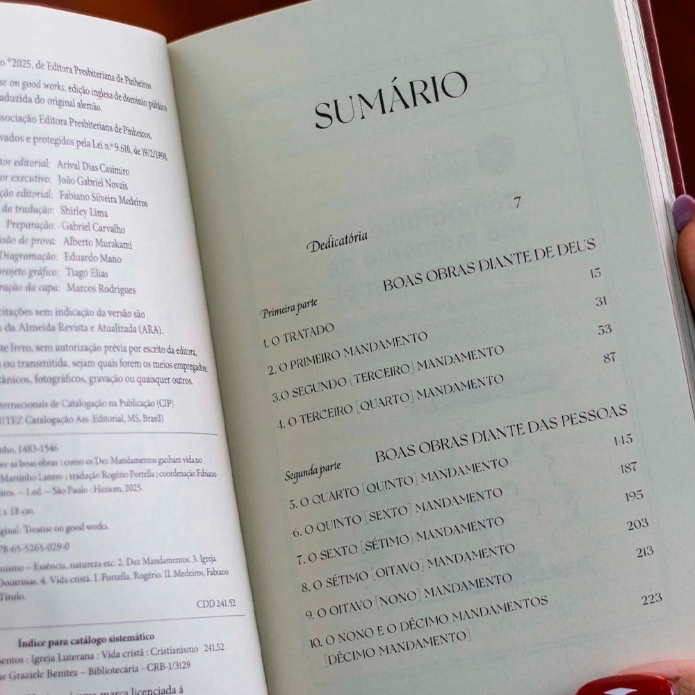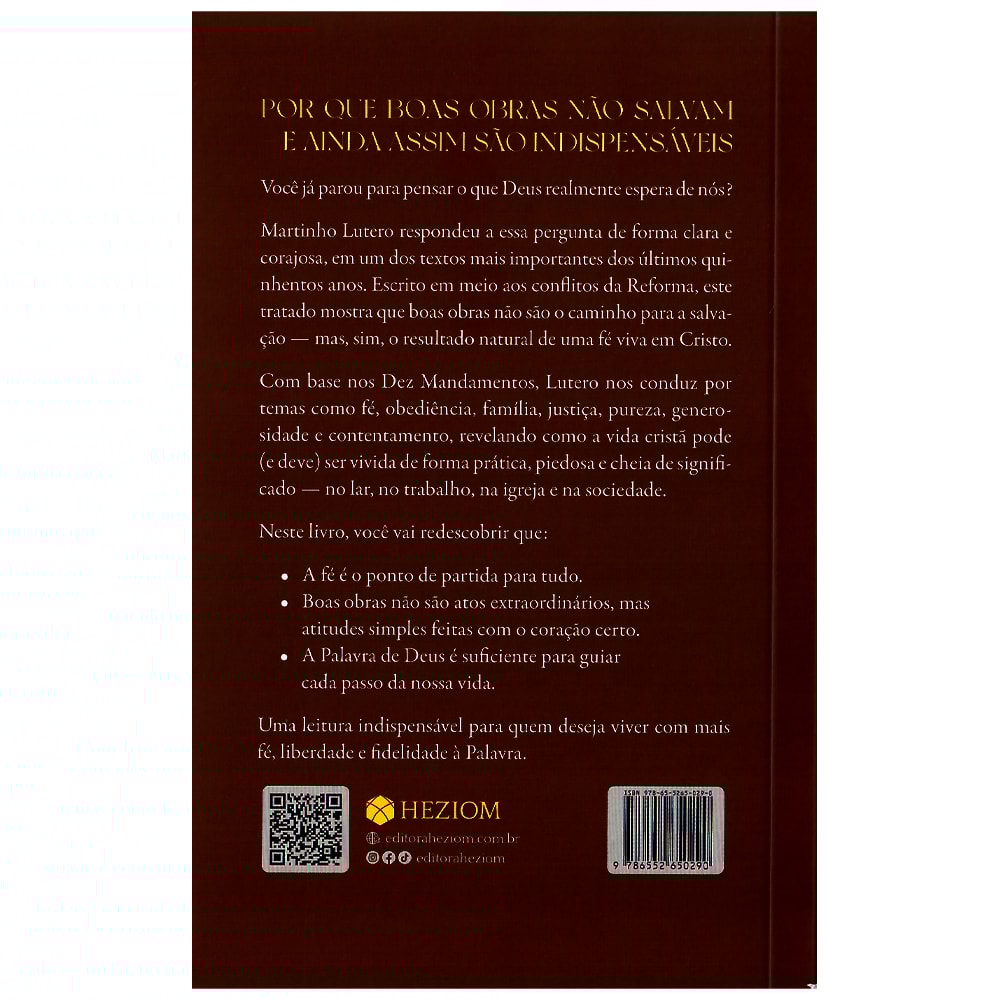Guiando-se pelos Dez Mandamentos, Lutero explora temas como fé, obediência, família, justiça, pureza, generosidade e contentamento, mostrando como o cristianismo se traduz em ações práticas no dia a dia — em casa, no trabalho, na igreja e no mundo.