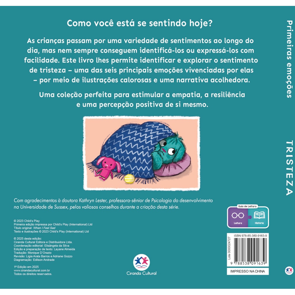 Como você está se sentindo hoje? As crianças passam por uma variedade de sentimentos ao longo do dia, mas nem sempre conseguem identificá-los ou expressá-los com facilidade. Este livro lhes permite identificar e explorar o sentimento de tristeza – uma das seis principais emoções vivenciadas por elas – por meio de ilustrações calorosas e uma narrativa acolhedora. Uma coleção perfeita para estimular a empatia, a resiliência e uma percepção positiva de si mesmo.