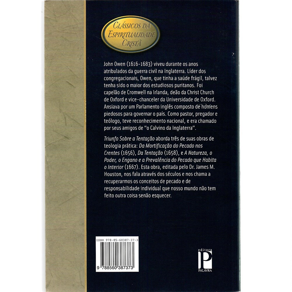 Este livro aborda três de suas obras de teologia prática: Da Mortificação do Pecado nos Crentes(1656), Da Tentação(1658), e A Natureza, o Poder, o Engano e a Prevalência do Pecado que Habita o Interior(1667). Esta obra editada pelo Dr.James M.Houston, nos fala através dos séculos e nos chama a recuperarmos os conceitos de pecado e de responsabilidade individual que nosso mundo não têm feito outra coisa senão esquecer. "Se o nosso interesse é pelo estudo teológico florescente da espiritualidade, um modelo puritano de piedade irá realçar para nós aspectos da realidade espiritual que os modelos já bem conhecidos - patrístico, medieval, dos séculos XVI, XVIII e XX, católico romano, ortodoxo, anglicano, wesleyano, luterano, reformado - não enfocam tão claramente; e não há dúvida de que, dentre todos os modelos puritanos, John Owen é o mais rico. Se a nossa preocupação é com a vida cristã prática na atualidade, um modelo puritano de piedade exporá muito rapidamente a razão pela qual nossa espiritualidade presente é superficial, a saber, a superficialidade de nossas visões de pecado. E não há dúvida de que, dentre todos os modelos puritanos, o de Owen é o que vai mais fundo nesse ponto e pode nos tornar mais rapidamente realistas com relação ao pecado. Cristãos hoje necessitam urgentemente daquilo que Owen tem a nos dar. Que possamos ser capazes de enxergar isto."