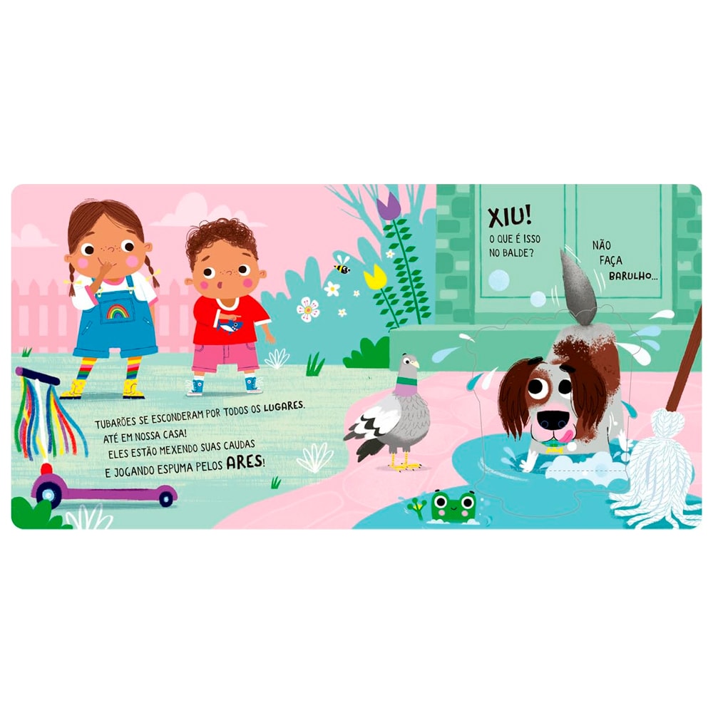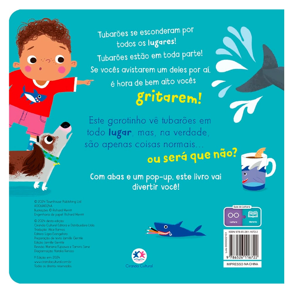 Neste livro divertido e cheio de surpresas, os tubarões estão se escondendo por todos os lugares – ou será que estão? A cada página, um garotinho acha que avista tubarões em situações do dia a dia, mas será que ele está mesmo certo? Ou são apenas objetos comuns disfarçados?