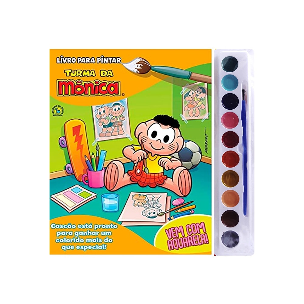 Deixe sua imaginação fluir usando as cores da aquarela para pintar toda a Turma da Mônica! Acompanha aquarela com 10 cores e pincel para você se divertir de montão!