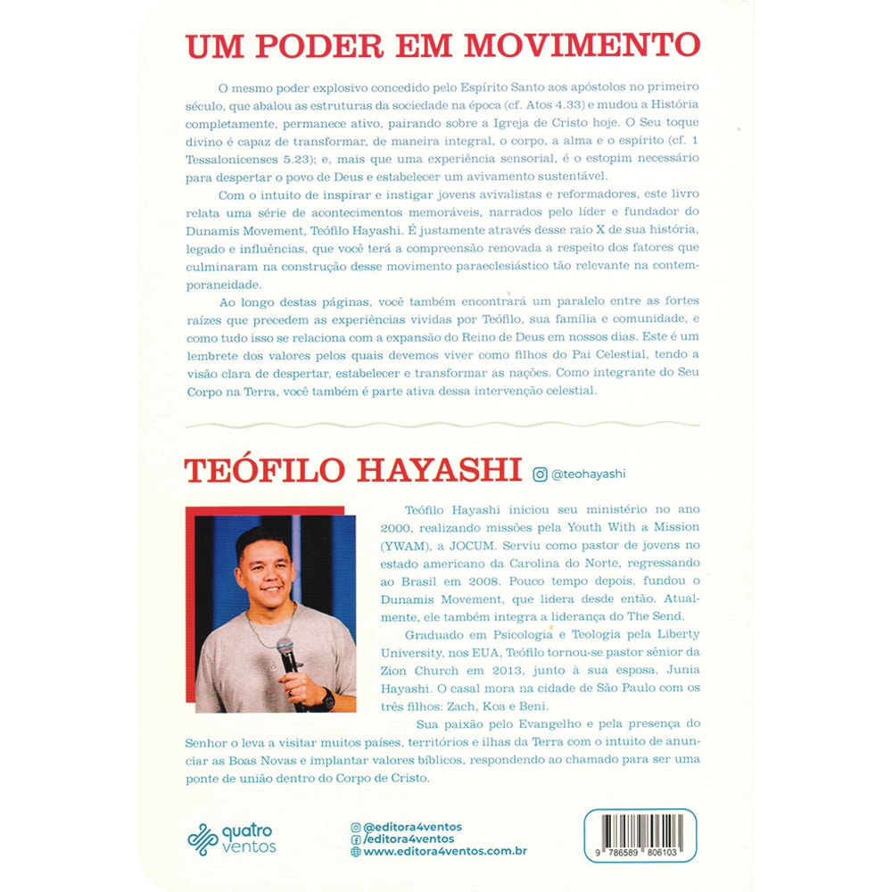 ""Téo Hayashi é um avivalista e líder que possui estratégias dadas pelos Senhor para ver e disseminar um mover nacional de Deus. Neste livro, ele nos dá insigths e revelações, além de nos contar a história do Dunamis, um movimento que o Senhor opera na Terra. Casa queira conhecer as chaves que resultam em um mover de Deus, este livro é pra você. Isto é apenas uma teoria, mas Deus em ação."" - Dr. Russel Evans