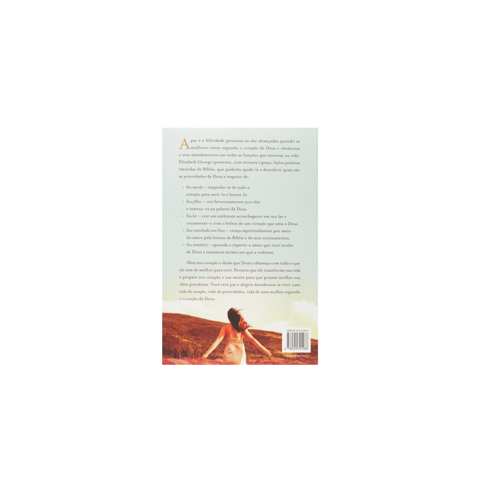 Seja uma mulher especial segundo o plano de Deus para vocêA paz e a felicidade genuínas só são alcançadas quando as mulheres vivem segundo o coração de Deus e obedecem a seus mandamentos em todas as funções que exercem na vida. Elizabeth George apresenta, com ternura e graça, lições práticas extraídas da Bíblia, que poderão ajudá-la a descobrir quais são as prioridades de Deus a respeito de: Seu marido empenhe-se de todo o coração para servi-lo e honrá-lo. Seus filhos ore fervorosamente por eles e instrua-os na palavra de Deus. Seu lar crie um ambiente aconchegante em seu lar e ornamente-o com a beleza de um coração que ama a Deus. Sua caminhada com Deus cresça espiritualmente por meio do amor pela leitura da Bíblia e de seus ensinamentos. Seu ministério aprenda a repartir o amor que você recebe de Deus e transmita ânimo aos que a rodeiam. Abra seu coração e deixe que Deus o abasteça com tudo o que ele tem de melhor para você. Permita que ele transforme sua vida e prepare seu coração e sua mente para que possam acolher sua obra grandiosa. Você terá paz e alegria duradouras se viver uma vida de oração, vida de prioridades, vida de uma mulher segundo o coração de Deus. Inclui um guia de estudos.