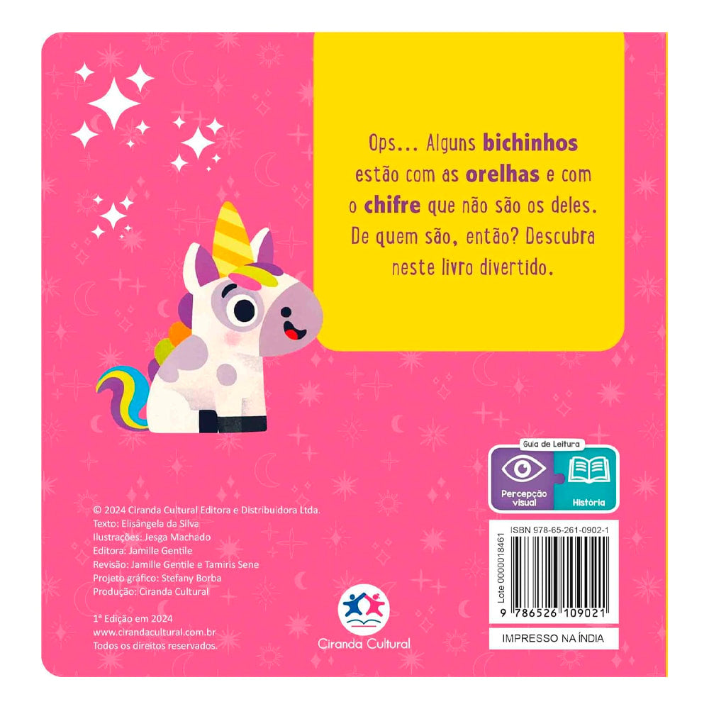 Oops... Alguns animais estão com orelhas que não são as suas! Mas de quem serão essas orelhinhas? Venha se divertir e descobrir neste livro encantador!
