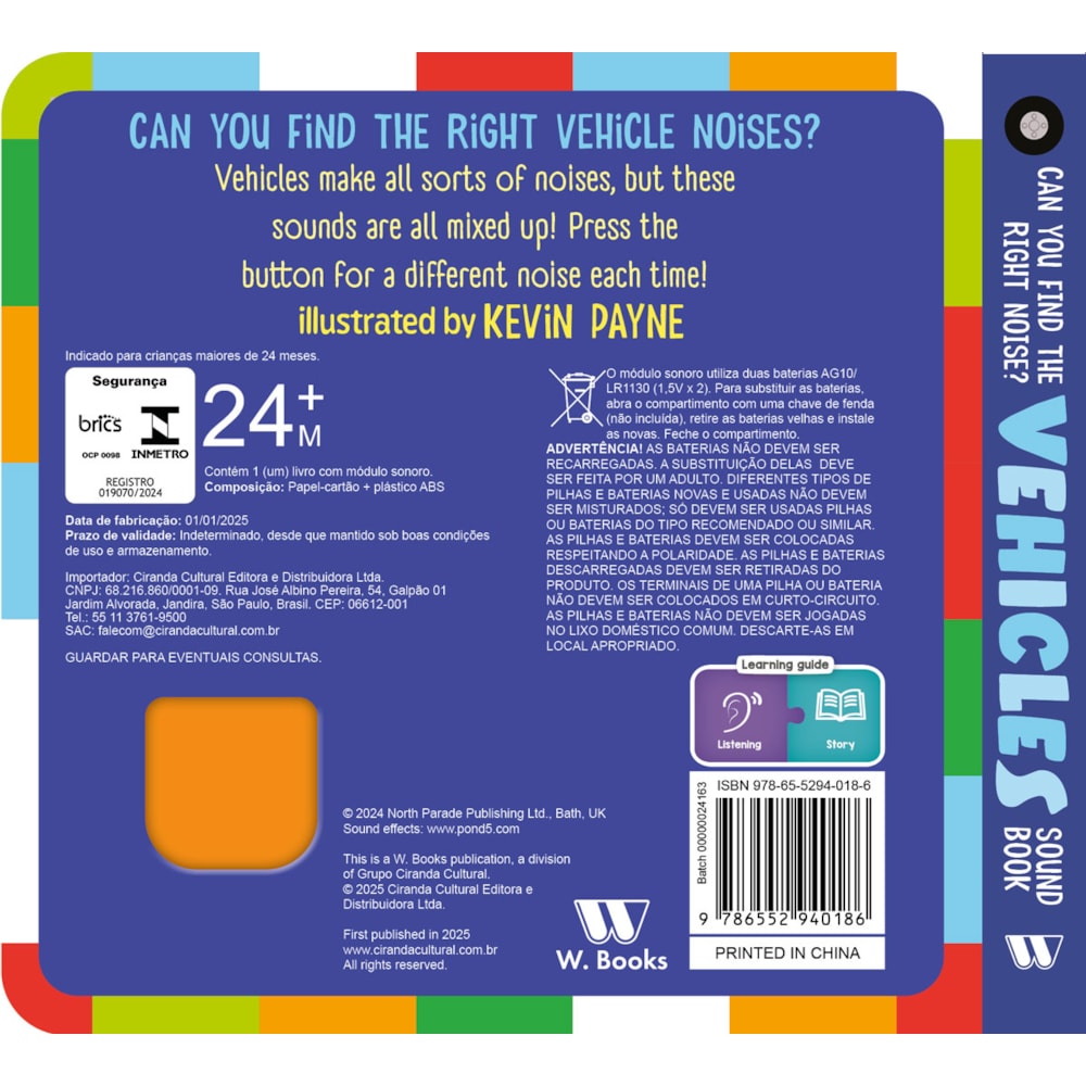 Can you find the right Vehicle noises? Vehicles make all sorts of noises, but these sounds are all mixed up! Press the button for a different noise each time! And don't worry: if the battery runs out, just replace it and the fun continues!