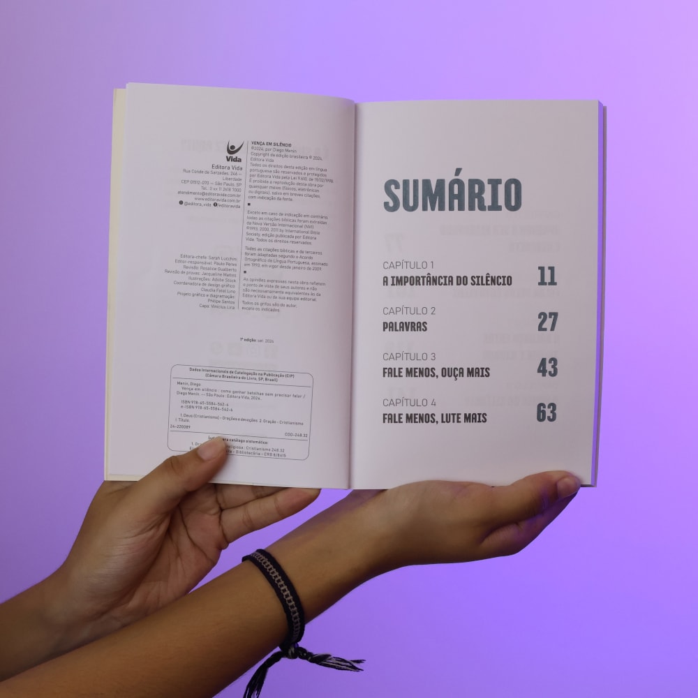 Vença em Silêncio explora o poder transformador do silêncio em nossa vida espiritual e emocional. Baseado em exemplos bíblicos como o de Daniel — que enfrentou grandes batalhas espirituais com silêncio e oração —, Diego Menin argumenta que o verdadeiro guerreiro não é aquele que fala mais alto, mas sim aquele que sabe controlar suas palavras e esperar o momento certo para agir. Este livro revela os perigos de falar demais, especialmente quando impulsionado por raiva, tristeza ou desespero, e oferece conselhos práticos sobre como cultivar o silêncio em uma sociedade que valoriza o barulho e a comunicação constante. É uma leitura essencial para quem busca uma vida mais equilibrada e consciente, afastando-se da superficialidade e agitação do mundo moderno.