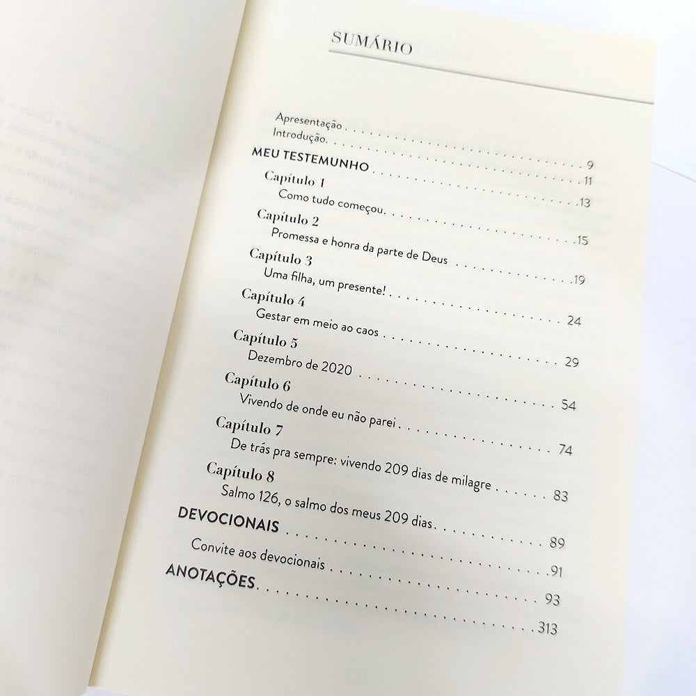 Foram 209 dias de gestação e 209 dias de milagre. O prognóstico era morte, mas Deus dispensou vida, e vida em abundância. "Questionei minha fé, duvidei de Deus e, mesmo assim, Ele foi misericordioso." diz Edilaine Francescato.