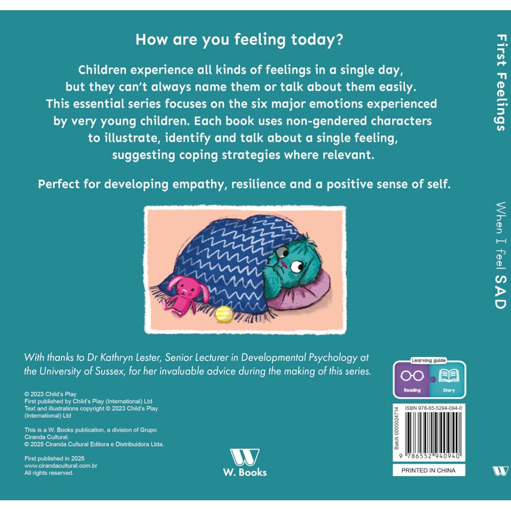How are you feeling today? Children experience all kinds of feelings in a single day, but they can’t always name them or talk about them easily. This essential series focuses on the six major emotions experienced by very young children. Each book uses non-gendered characters to illustrate, identify and talk about a single feeling, suggesting coping strategies where relevant. Perfect for developing empathy, resilience and a positive sense of self.